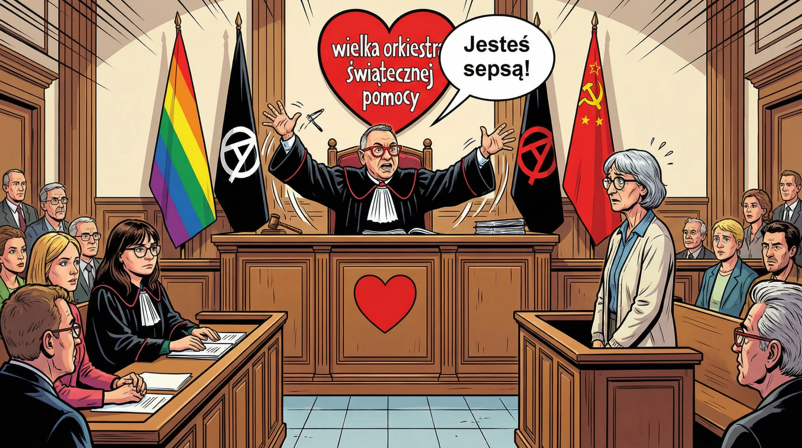 O przysłowiowej 6.00 rano policjanci zapukali do drzwi, przeszukali mieszkanie i zatrzymali Panią Izabelę. Na mocy postanowienia prokurator Sylwii Czarneckiej podejrzana otrzymała zakaz kontaktowania się z Jerzym Owsiakiem i obowiązek stawiania się na wezwanie Policji. Pani prokurator w przeszłości miała zarzuty związane z prowadzeniem samochodu „na podwójnym gazie” i SO w Toruniu prawomocnie uznał jej winę, ale Sąd Najwyższy uniewinnił obecną podwładną Waldemara Żurka i dlatego mogła prowadzić to głośne postępowanie. 28 stycznia 2025 roku przed Sądem Rejonowym w Toruniu zapadł wyrok, sędzia Marcin Czarciński skazał Panią Izabelę na pół roku wiezienia w zawieszeniu na rok, zakaz kontaktowania się z Jerzym Owsiakiem przez 3 lata i dodatkowo skazana musi wypłacić 1000 zł zadośćuczynienia. Wyrok zapadł wbrew faktom, logice, doświadczeniu życiowym i literze prawa, czyli zostały złamane wszystkie zasady orzekania.