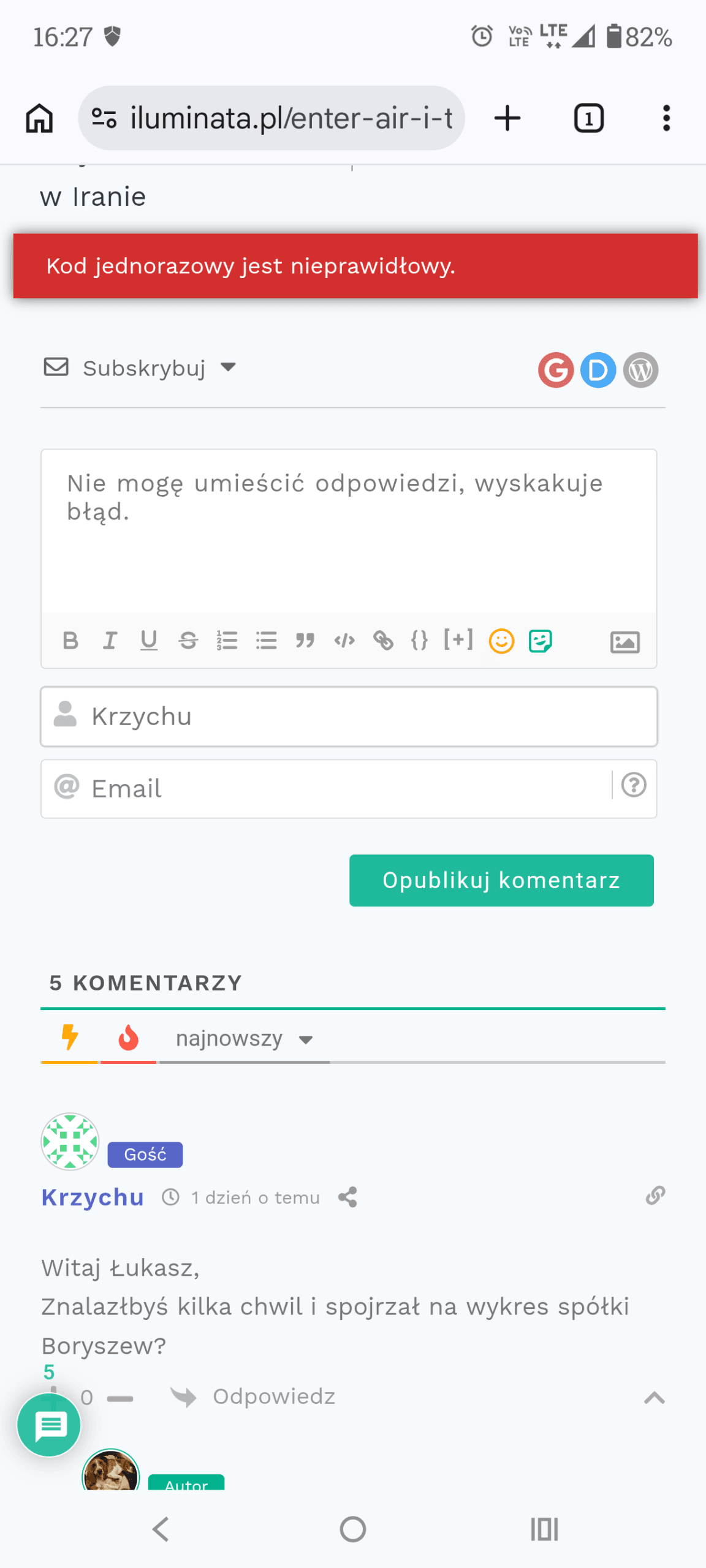Nie mogę umieścić odpowiedzi, wyskakuje mi taki komunikat